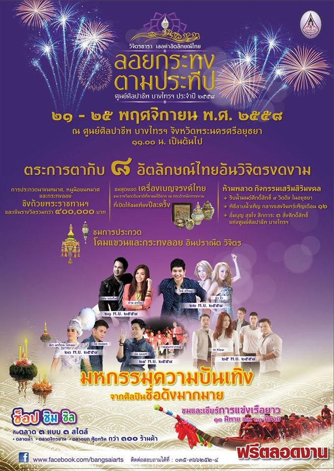 งานลอยกระทงตามประท ป ศ นย ศ ลปาช พบางไทร 21 25 พ ย 2558 ศ นย ศ ลปาช พบางไทร จ งหว ดพระนครศร อย ธยา